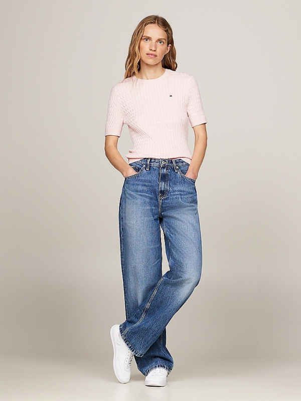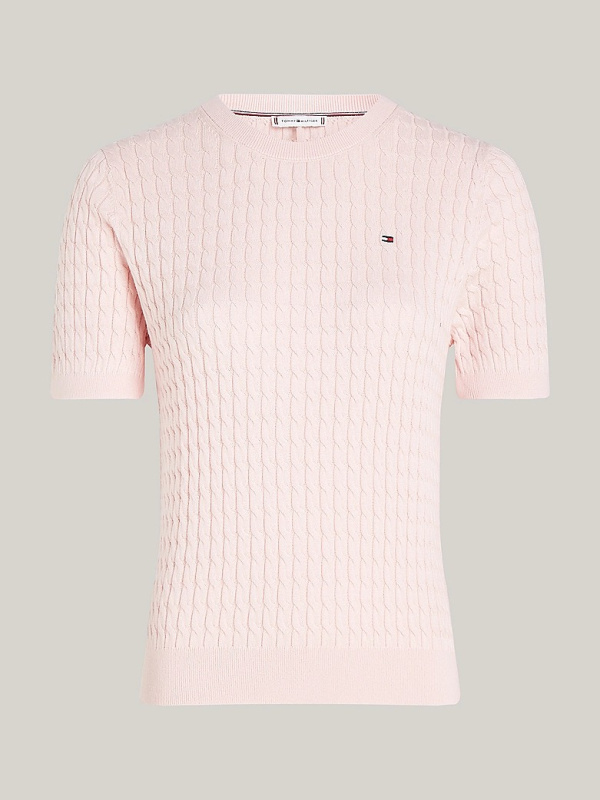 Ženski svijetlorozi uzani Tommy Hilfiger pulover kratkih rukava