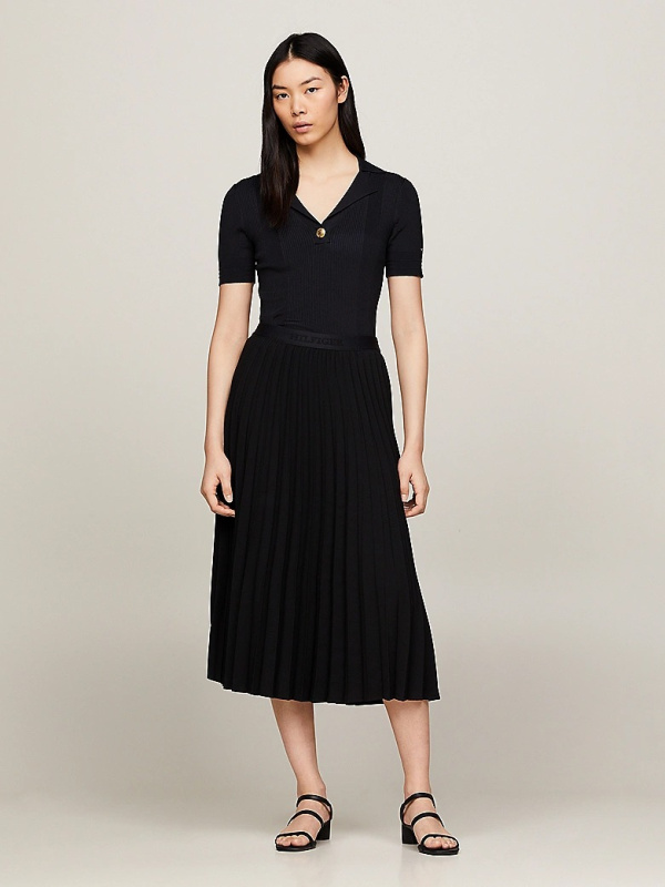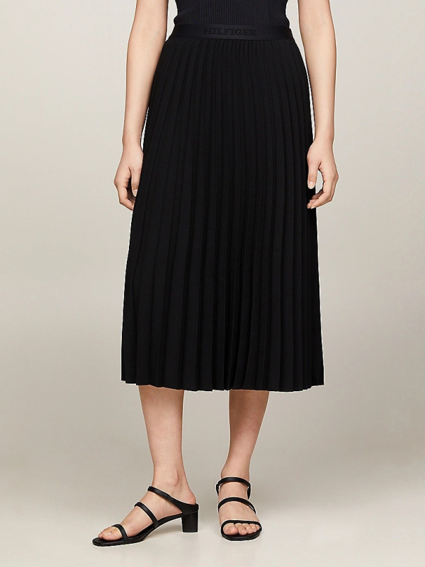 Hilfiger monotipski logotip u tonu na pojasu dodaje element sportske zabave fluidnom, nabranom pokretu ove suknje.