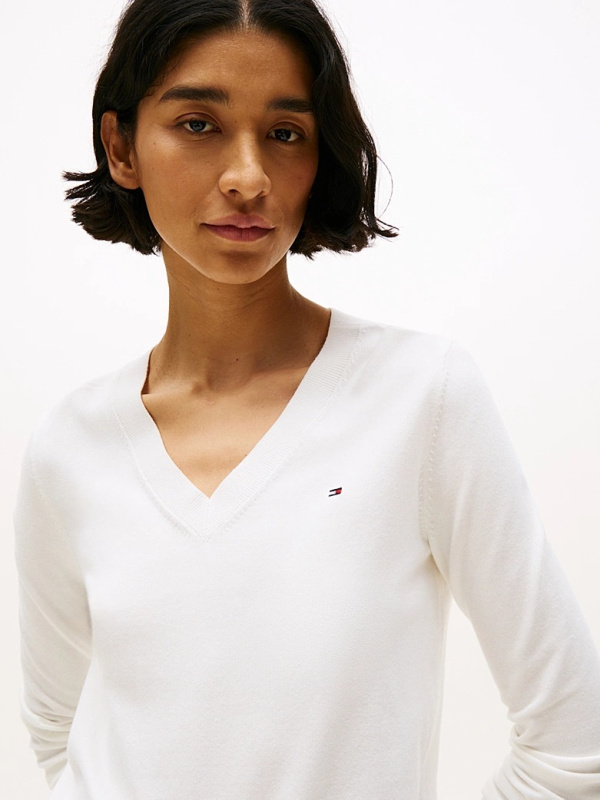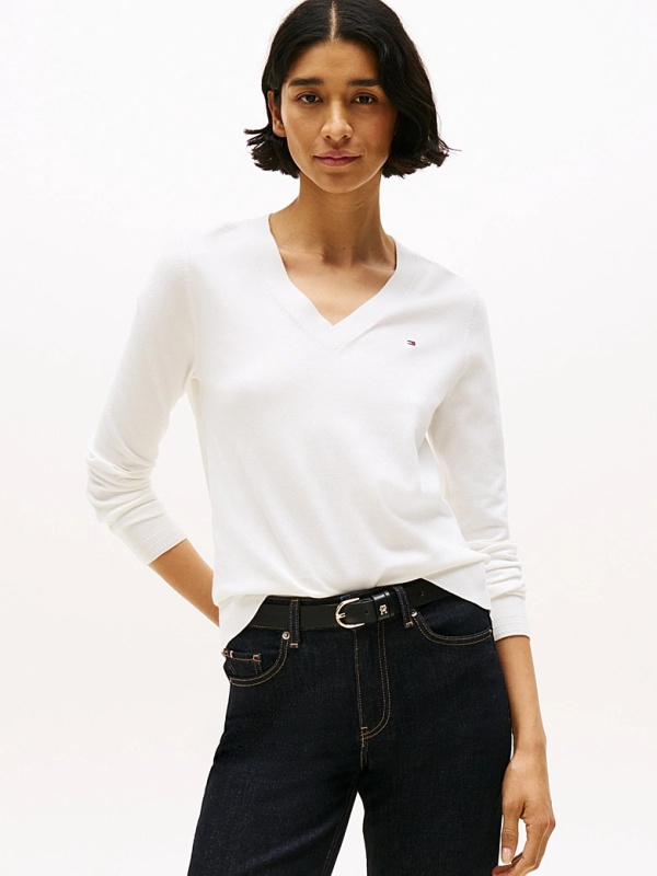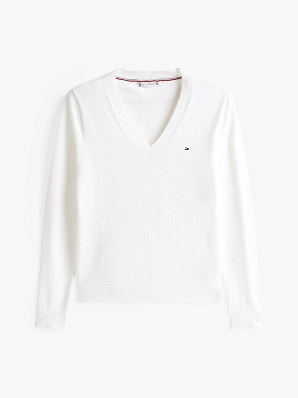 Ženski bijeli Tommy Hilfiger s V-izrezom i logom