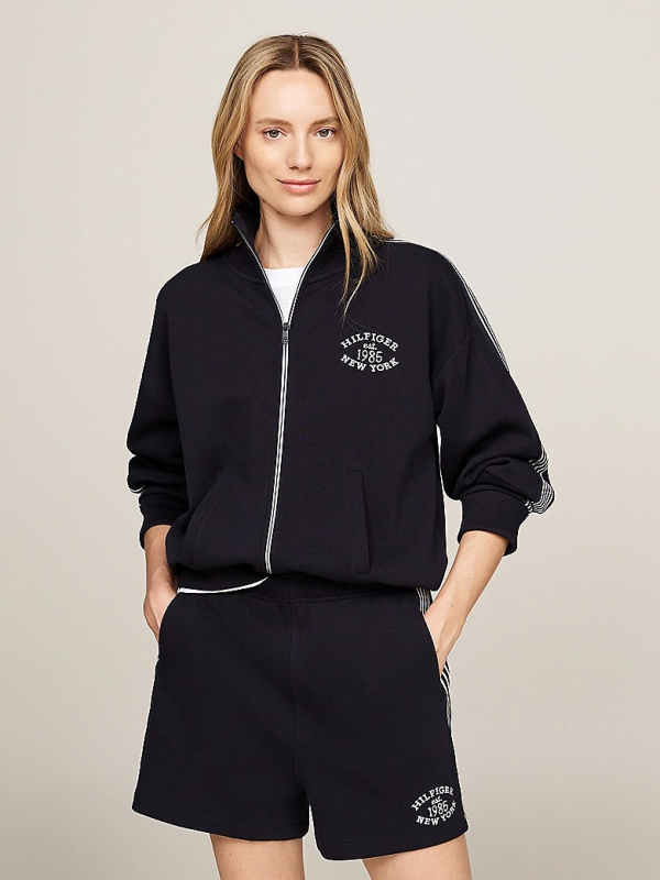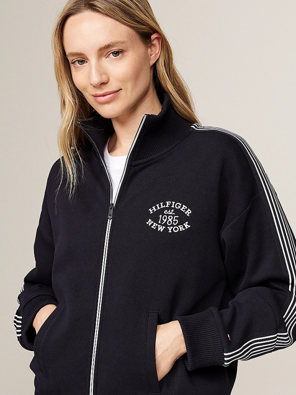 Ženska tamnoplava Tommy Hilfiger dukserica s logom i patentnim zatvaračem