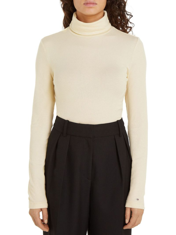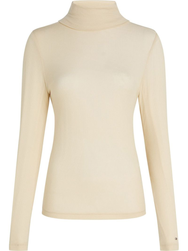 Ženska Tommy Hilfiger bež majica dugih rukava s roll ovratnikom