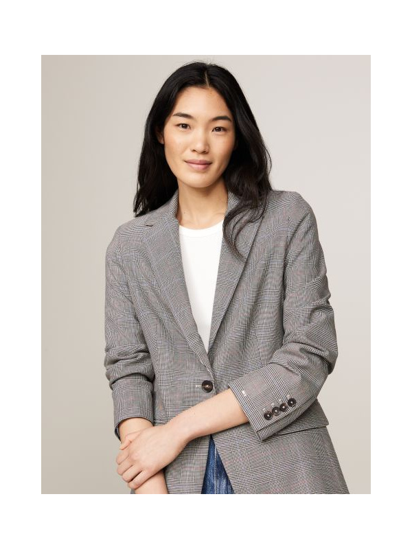 Ženski Tommy Hilfiger karirani sivi sako s jednom kopčanjem