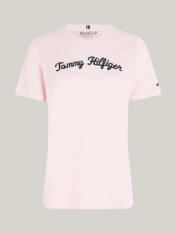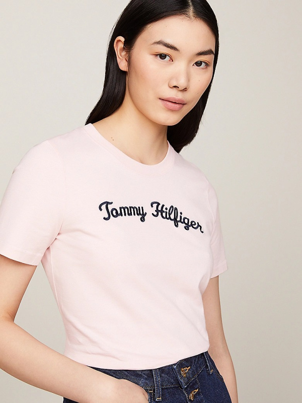 Ženska svijetloroza Tommy Hilfiger majica s izvezenim logom na prsima