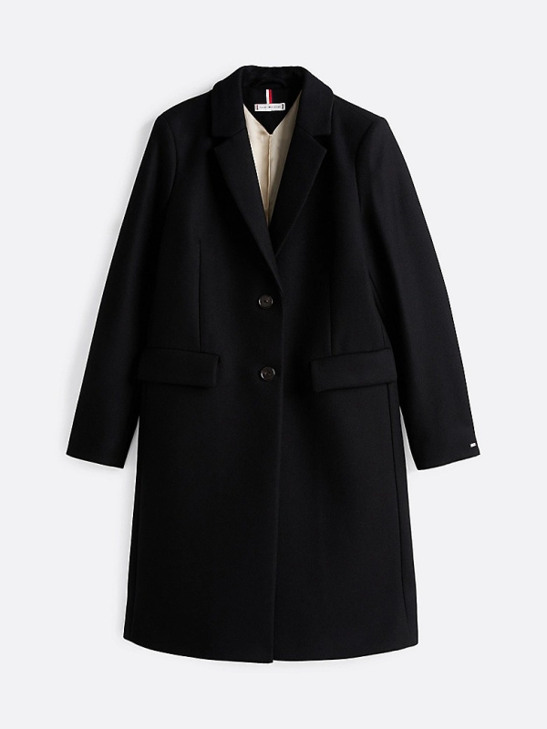 Ženski crni Tommy Hilfiger kaput na jedno kopčanje s kašmirom
