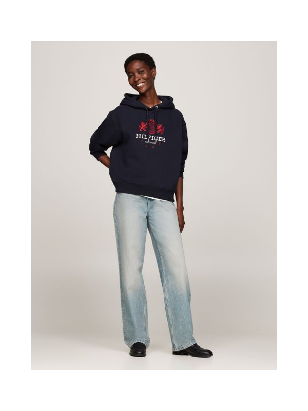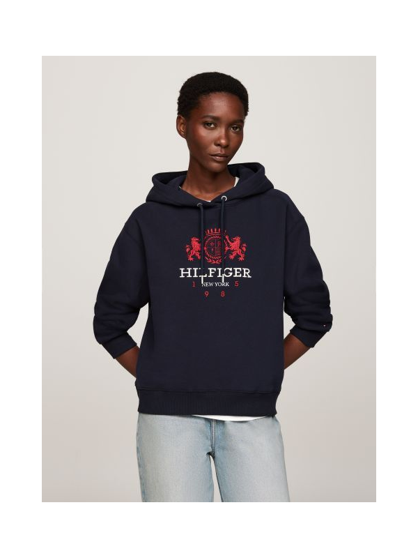 Ženska tamnoplava Tommy Hilfiger dukserica s logom i kapuljačom