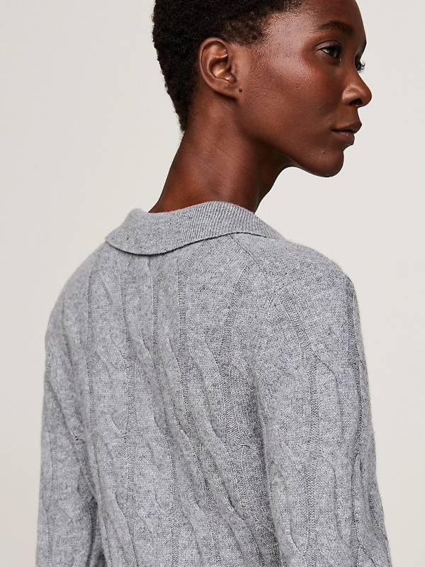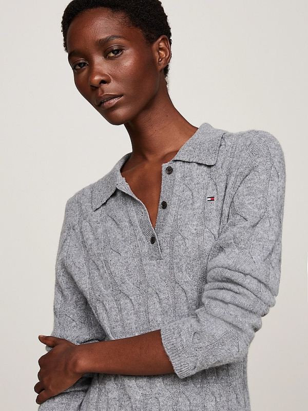 Izrađena od luksuzne vune s predimenzioniranom pletenom teksturom, ova džemper haljina u polo stilu donosi dojam nadahnut nasljeđem u elegantno ležerne dane.