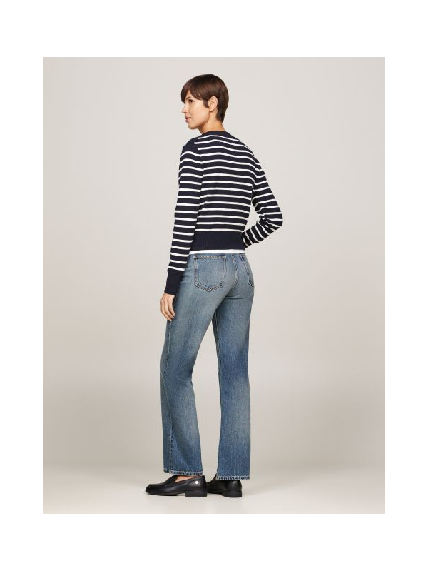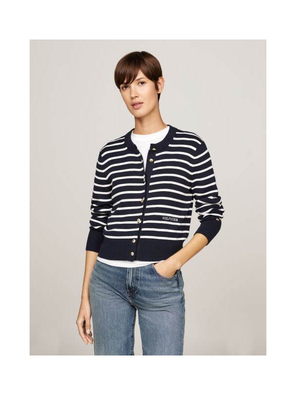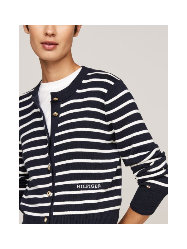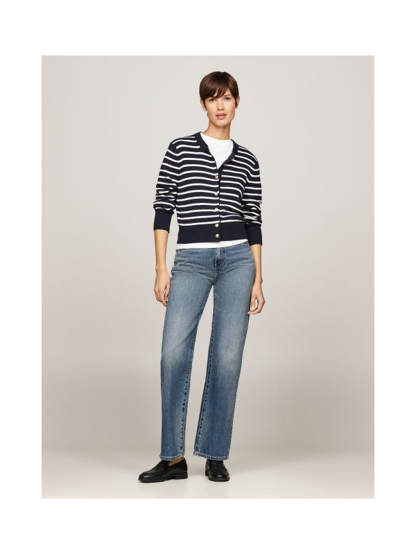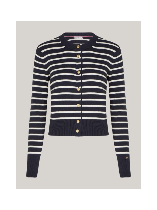 Ženski Tommy Hilfiger pulover na pruge s kopčanjem u kombinaciji tamnoplave i bijele boje