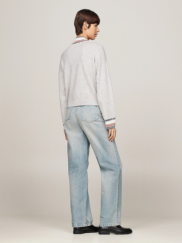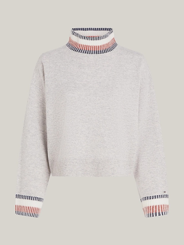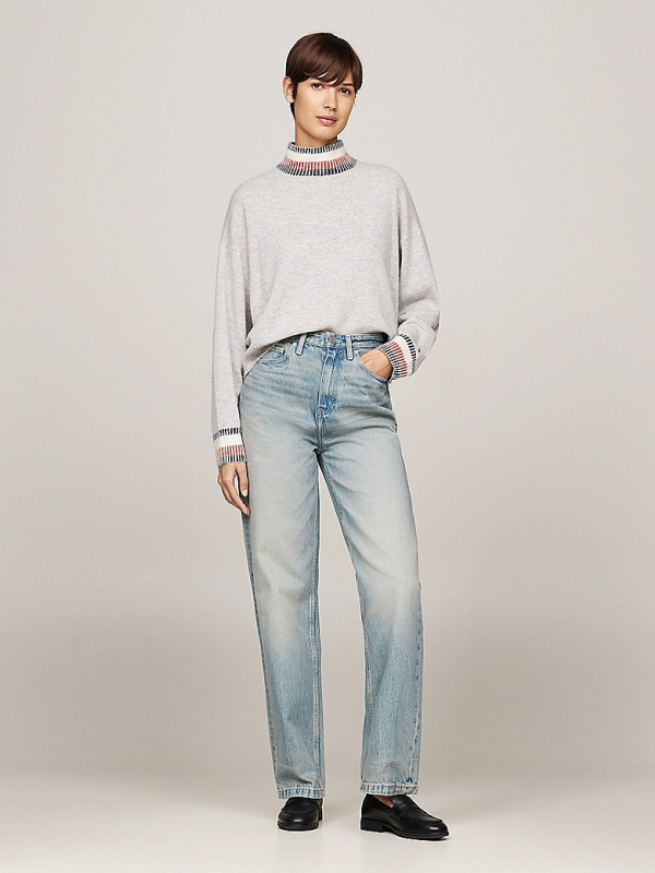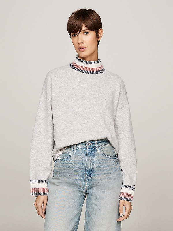 Ženski svijetlosivi TOMMY HILFIGER pulover s podignutim ovratnikom
