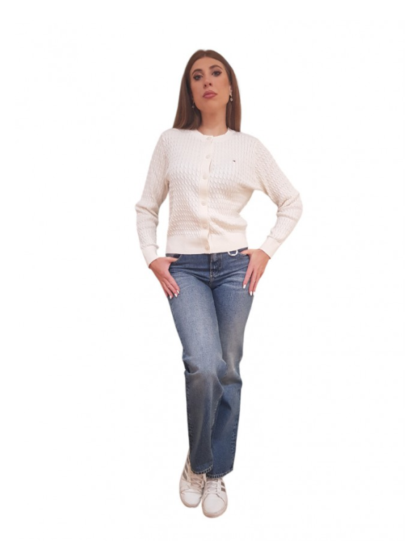 Pulover ženski Tommy Hilfiger bijele boje sa logom