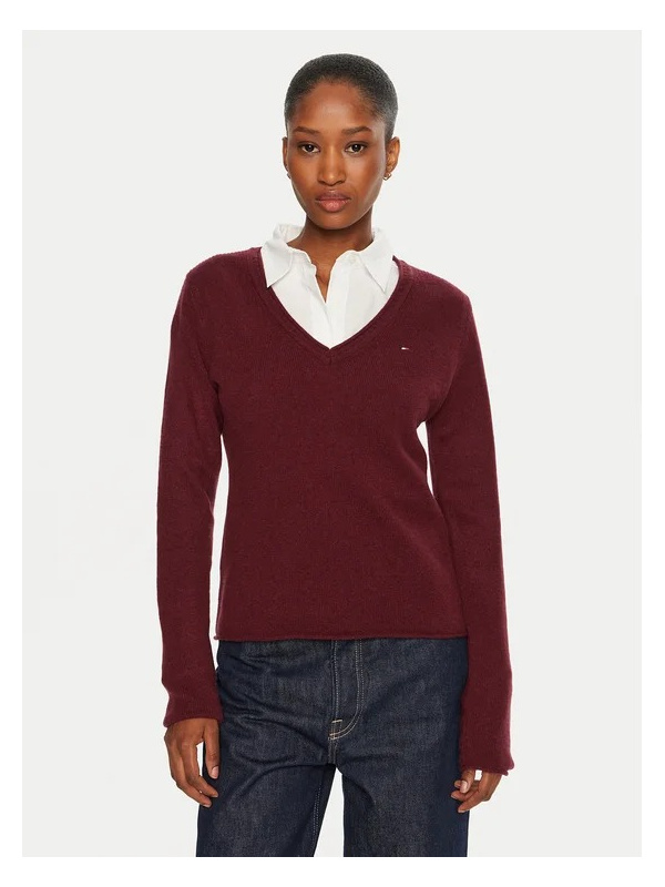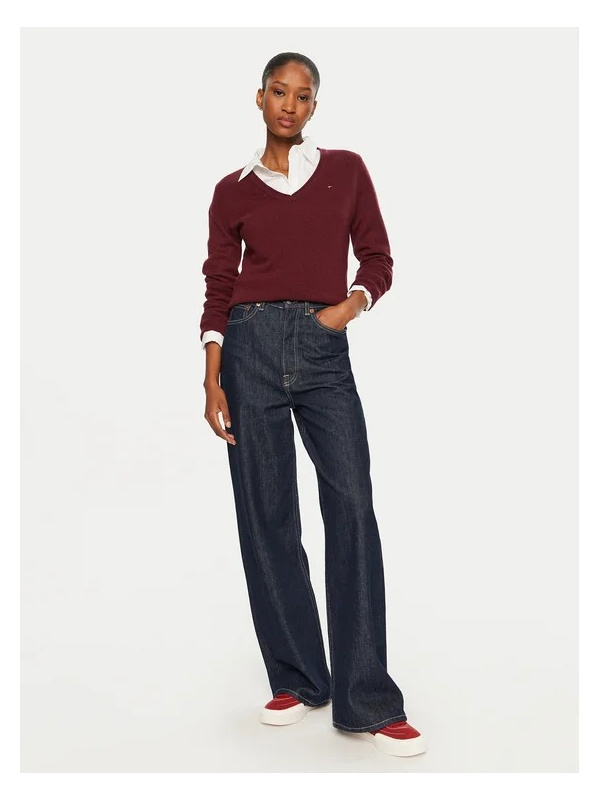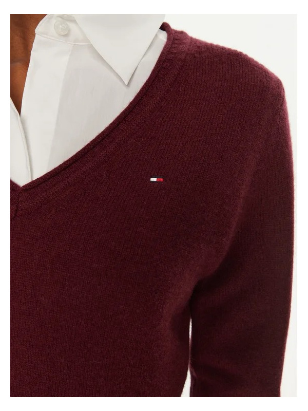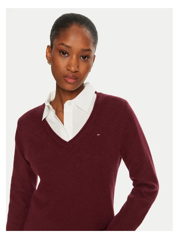 Ženski Tommy Hilfiger bordo pulover s logom i V- izrezom