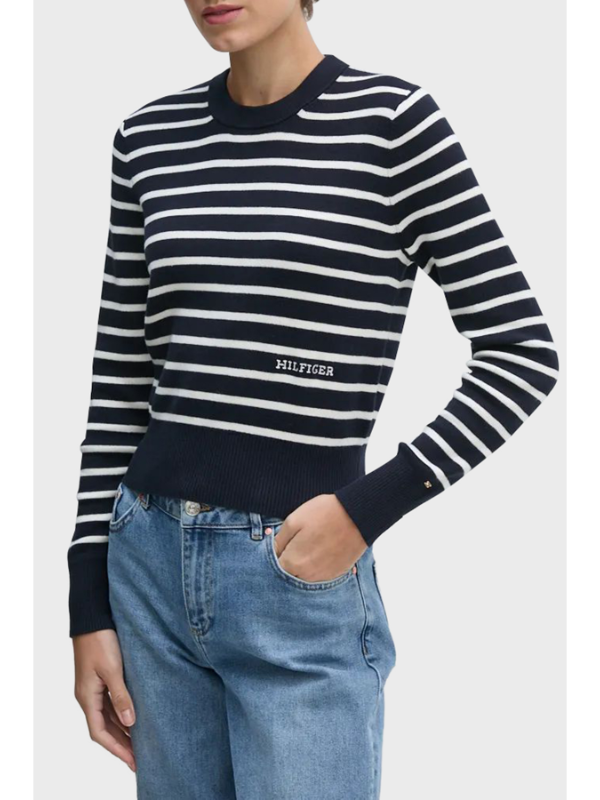 Ženski crno-bijeli Tommy Hilfiger pulover na pruge