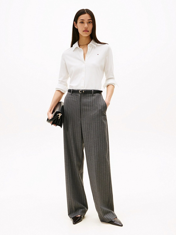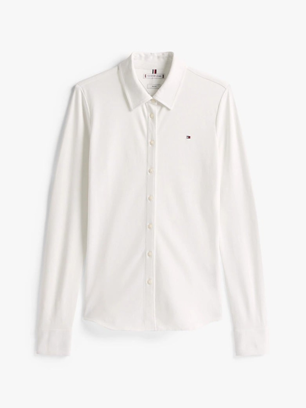 Ženska ecru-bijela Tommy Hilfiger košulja dugih rukava s logom na prsima
