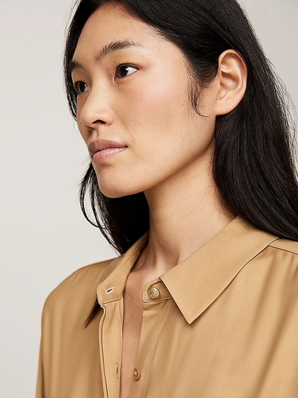 Ova elegantna košulja idealna je za posao ili igru, zahvaljujući midi dužini i elegantnom remenu koji se samovezuje.
