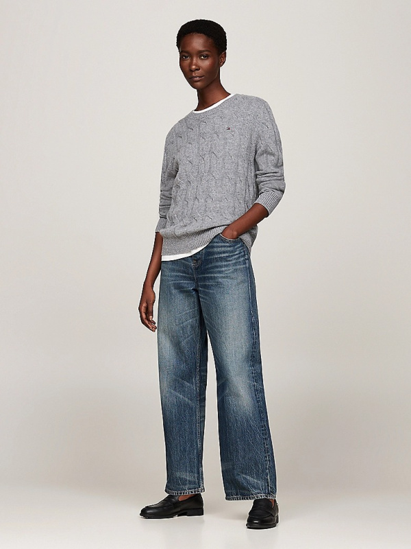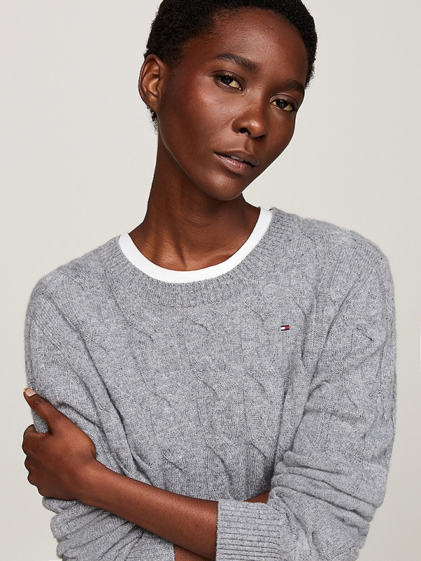 Ženski svijetlosivi Tommy Hilfiger pulover s logom