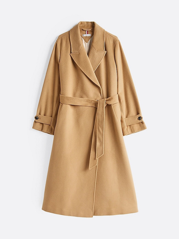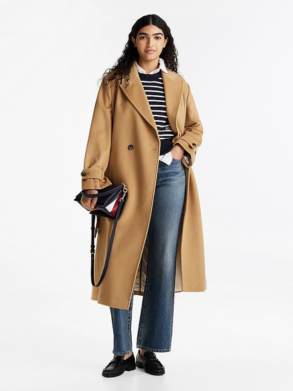 Ženski khaki Tommy Hilfiger kaput od mješavine vune na dvostruko kopčanje