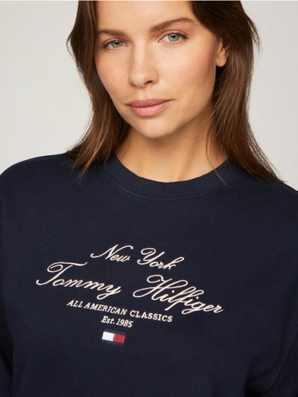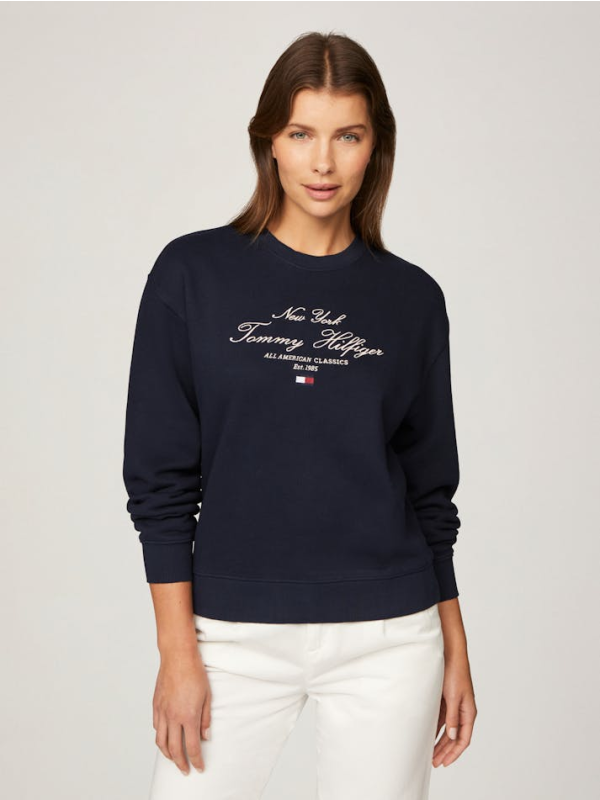 Ženski tamnoplavi Tommy Hilfiger pulover s printom na prsima