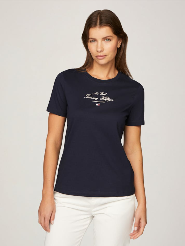 Ženska tamnoplava Tommy Hilfiger majica kratkih rukava s logom na prsima