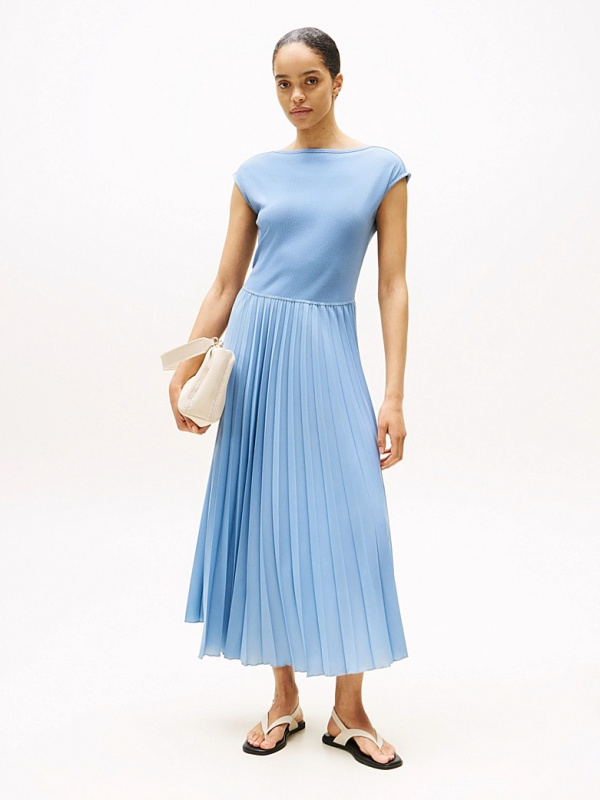 Ženska svijetloplava Tommy Hilfiger maxi haljina s plisiranom suknjom