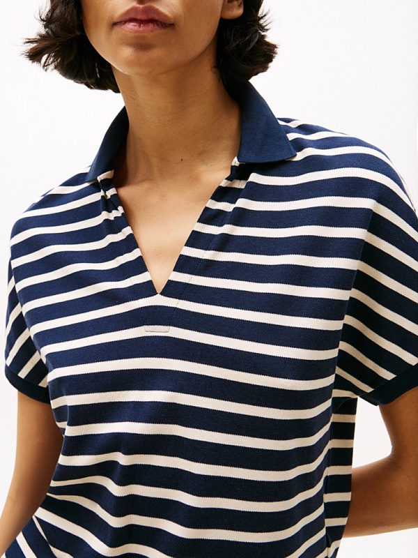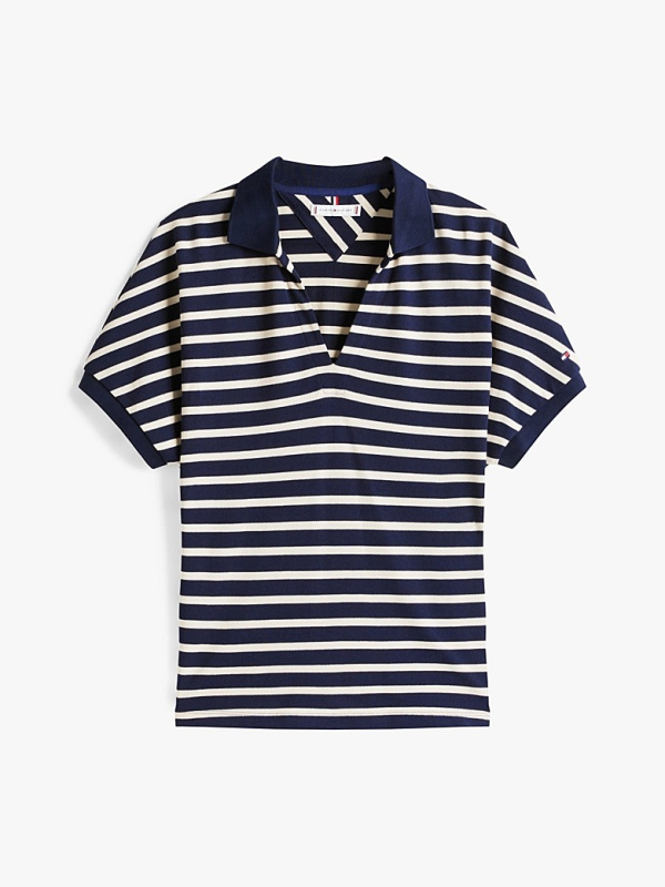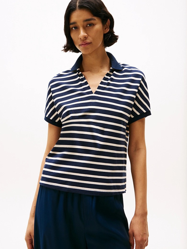 Ženska tamnoplava Tommy Hilfiger prugasta majica kratkih rukava na pruge