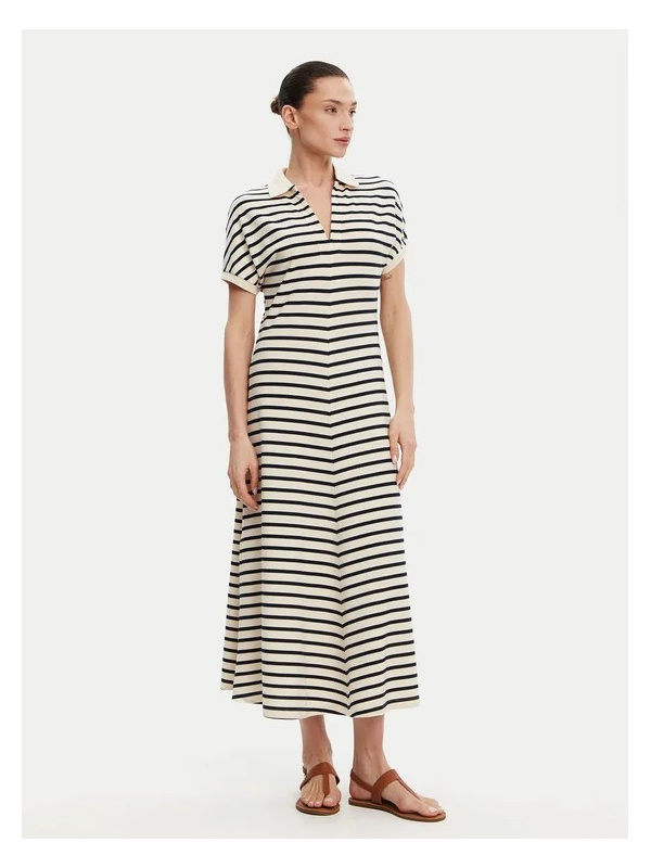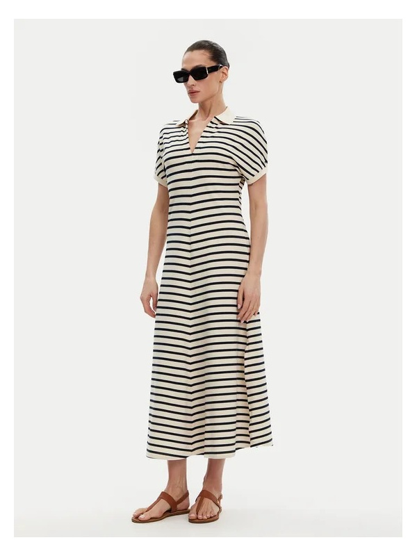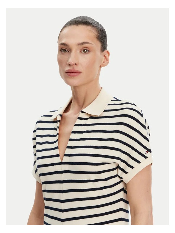 Ženska Tommy Hilfiger maxi polo haljina na pruge u kombinaciji tamnoplave i prljavobijele boje