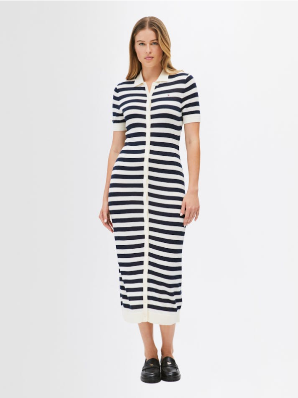 Ženska Tomym Hilfiger midi haljina na pruge u kombinaciji tamnoplave i bijele boje