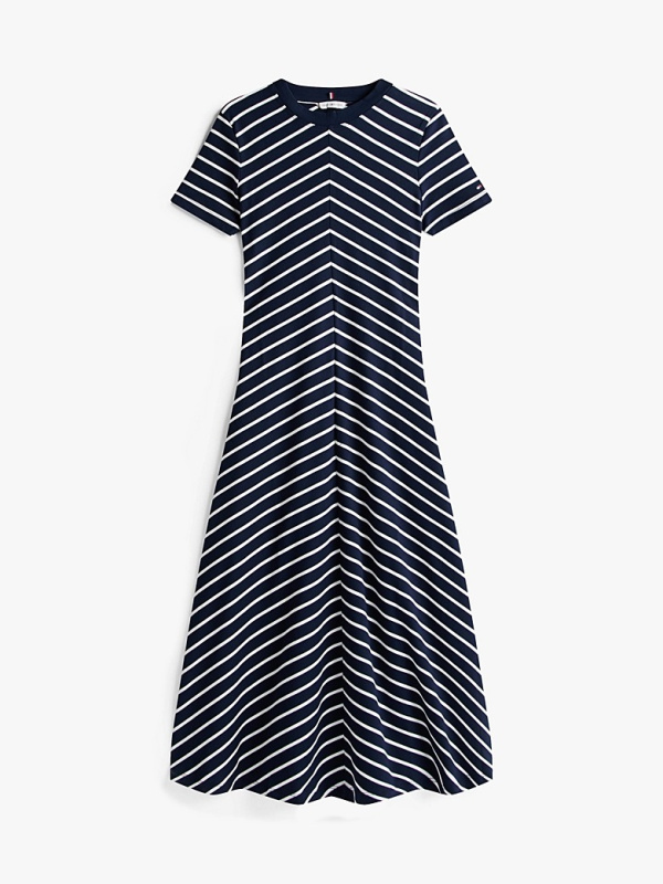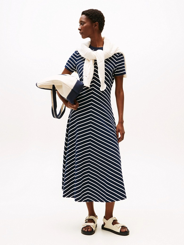Ženska tamnoplava Tommy Hilfiger haljina na pruge s logom