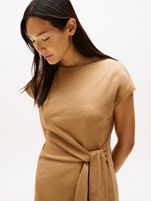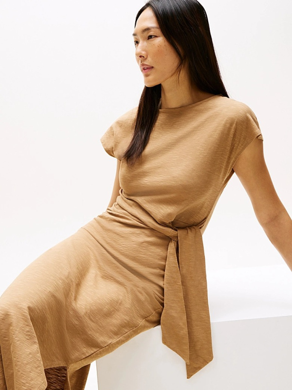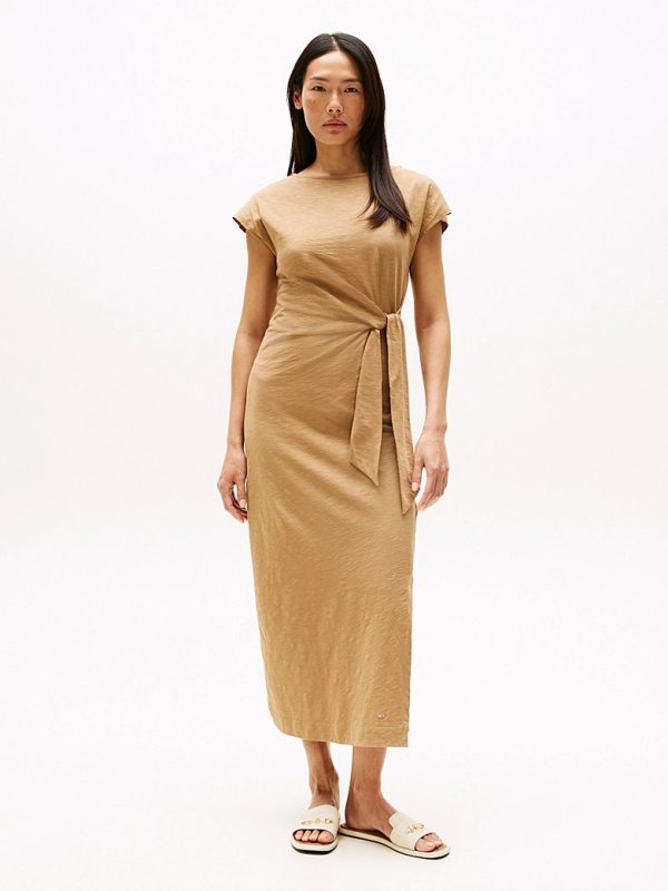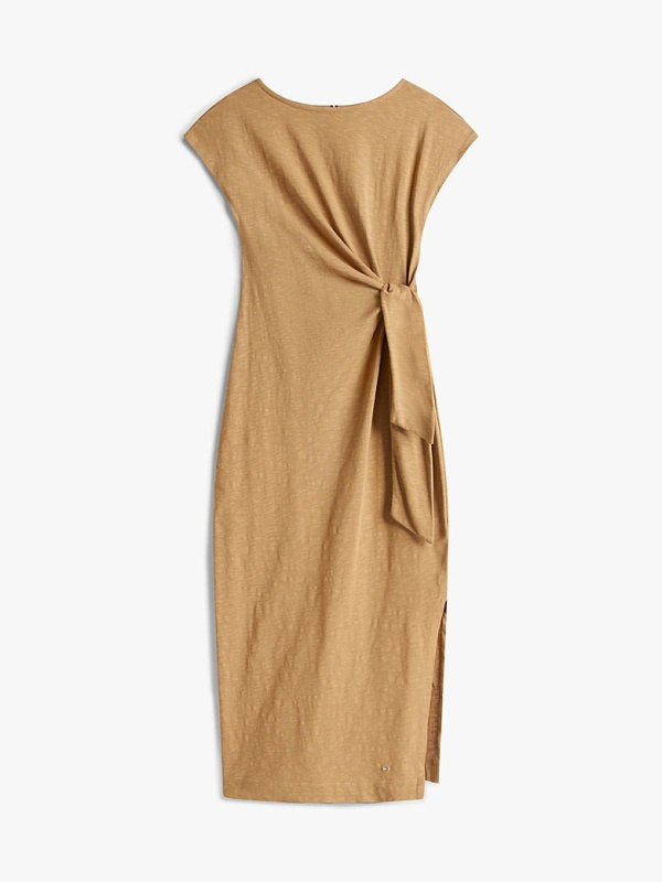Unesite ženstvenost u svoju svečanu odjeću ovom midi haljinom od čistog pamuka, s detaljima čvorova na struku i laskavim brodić izrezom.