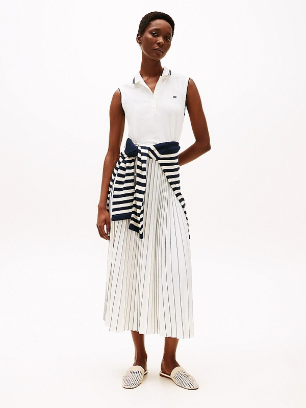 Ženska bijela Tommy Hilfiger maxi polo haljina na nabore