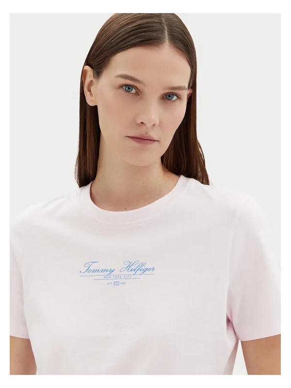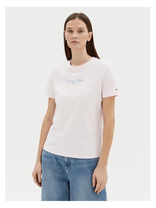 Ženska svijetloroza Tommy Hilfiger majica kratkih rukava s logom na prsima i rukavu