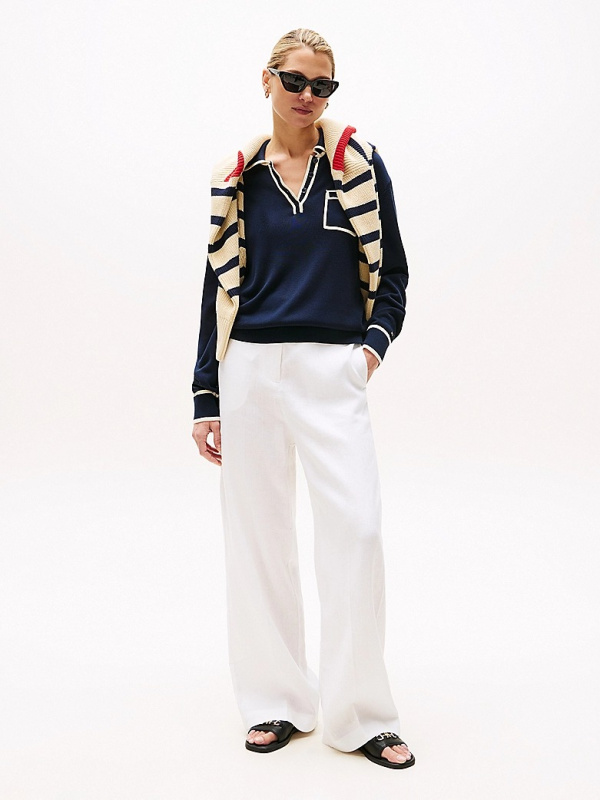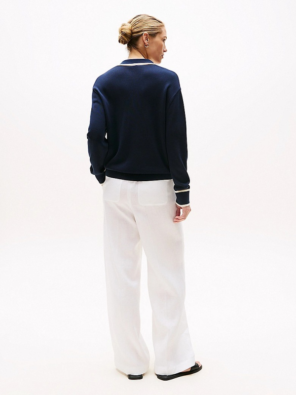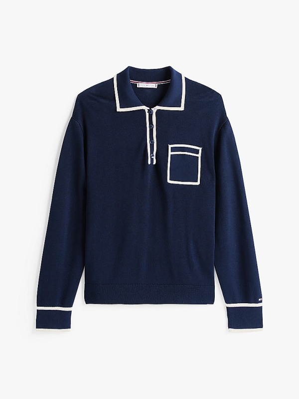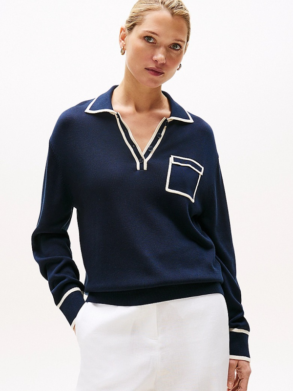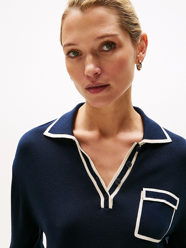 Ženski tamnoplavi kontrastni Tommy Hilfiger pulover s polo ovratnikom