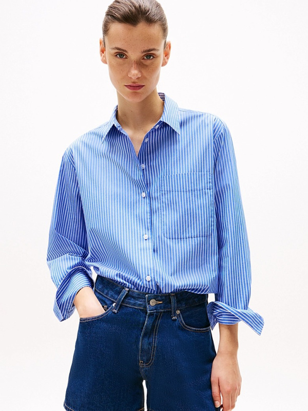 Ženska plava Tommy Hilfiger košulja dugih rukava s bijelim prugama