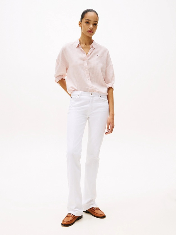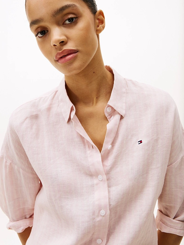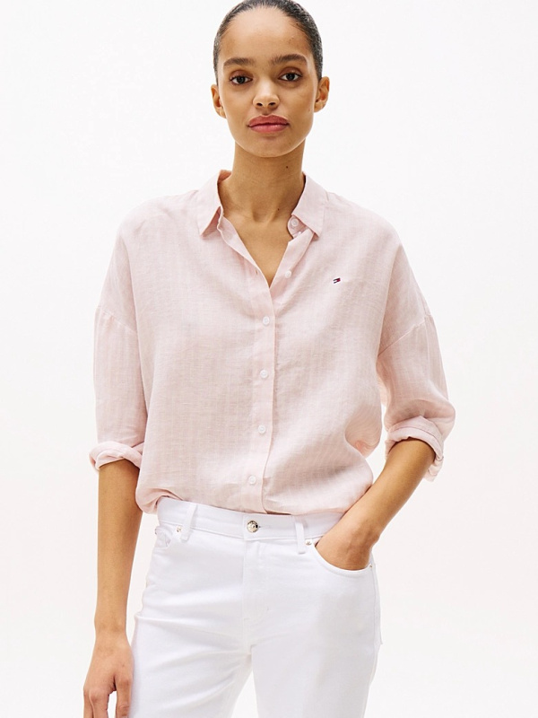 Ženska svijetloroza Tommy Hilfiger košulja sa prugama i logom na prsima