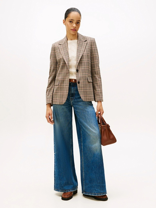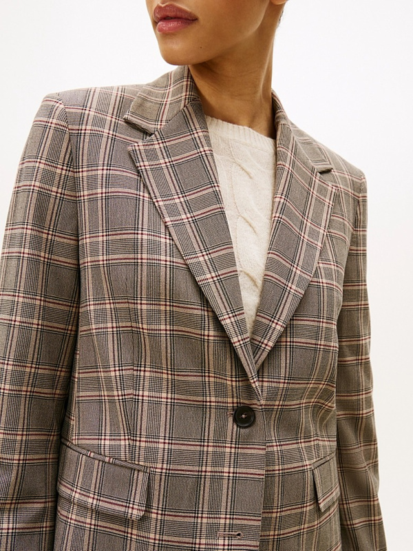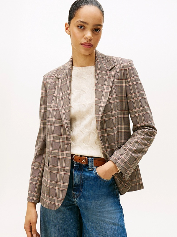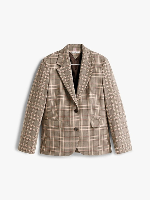 Ženski smeđi Tommy Hilfiger karirani sako s jednorednim kopčanjem
